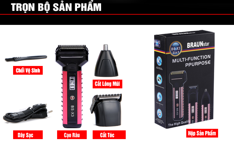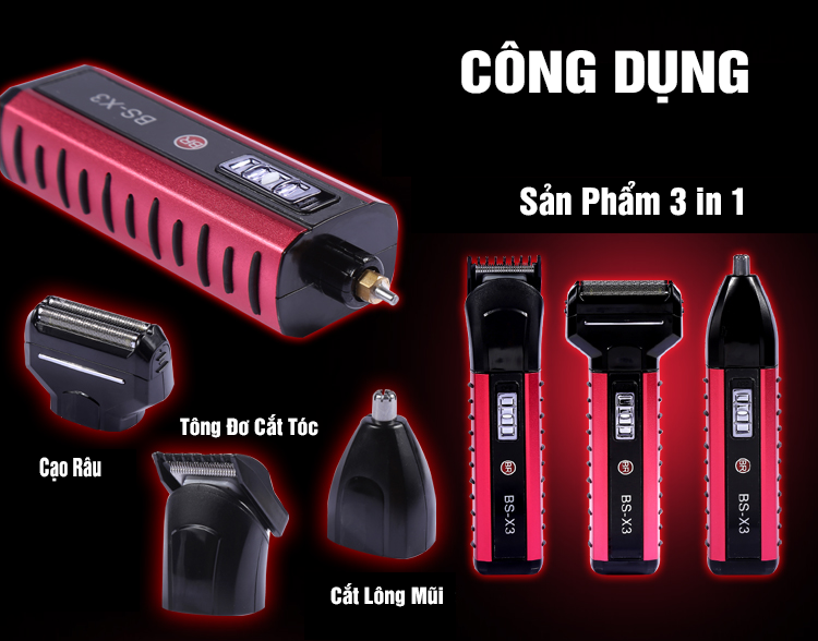 – Là sản phẩm tiên tiến thông minh: tông đơ kết hợp 3 trong 1 rất tiện dụng, cùng 1 thân máy có thể sử dụng được cả 3 công dụng ( cắt tóc , cạo râu , cắt lông mũi ) bạn không còn phải cồng kềnh với từng sản phẩm làm đẹp riêng biệt mỗi khi đi công tác, du lịch….